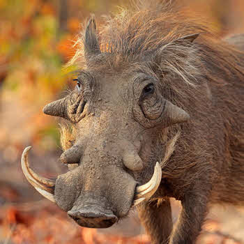 A warthog is identifiable by the two pairs of tusks protruding from the mouth and curving upwards. The head of the common warthog is large, with a mane down the spine to the middle of the back. Sparse hair covers the body. Its colour is usually black or brown. Tails are long and end with a tuft of hair. Common warthogs do not have subcutaneous fat and the coat is sparse, making them susceptible to extreme environmental temperatures.